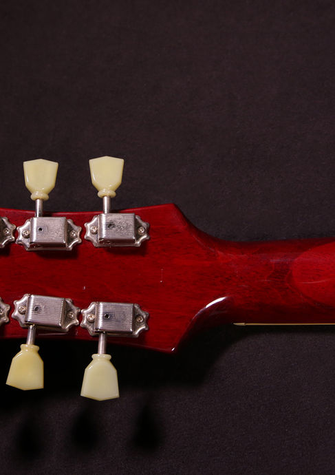 Diese Paula ist ein echter Hingucker und gleichzeitig ein ehrliches modifiziertes Arbeitstier - in wunderschönem Cherry Sunburst steht sie da wie frisch aus dem Ei gepellt. Der Hals hat ein angenehmes Medium C-Shape im 60s-Stil und spielt sich butterweich.