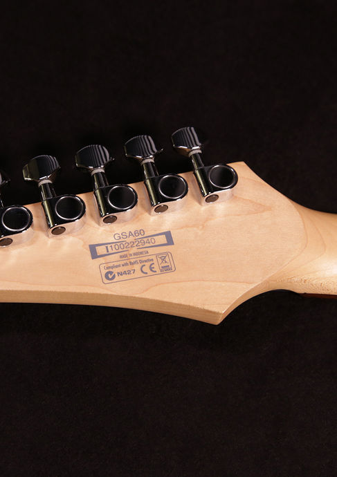 Diese schwarze Ibanez GIO GSA60 wurde 2010 in der Cort-Fabrik in Indonesien gebaut. Sie wird bis heute produziert und gehört zur Ibanez-Einsteigerserie.